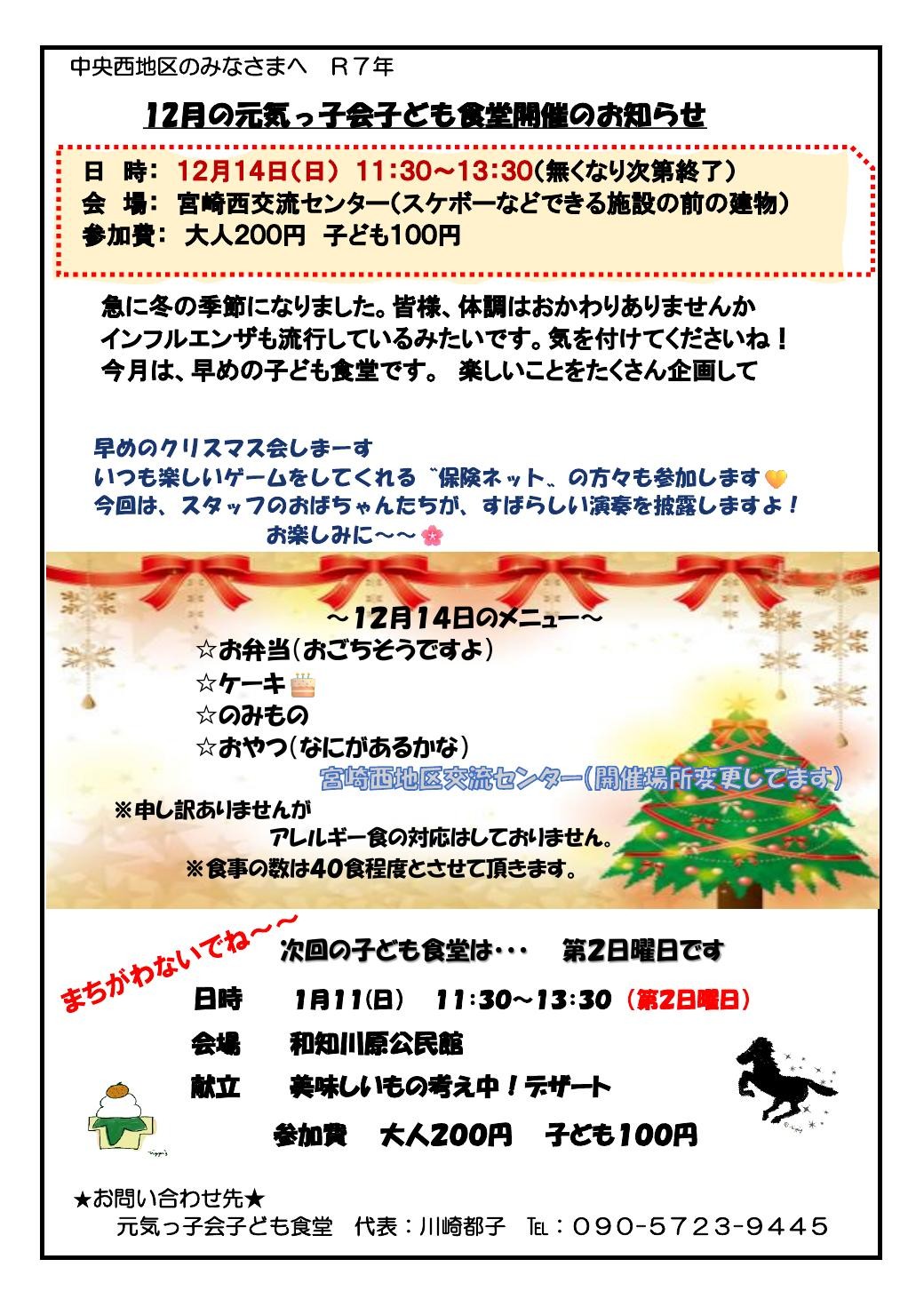 12月の子ども食堂を下記のとおり開催いたします。